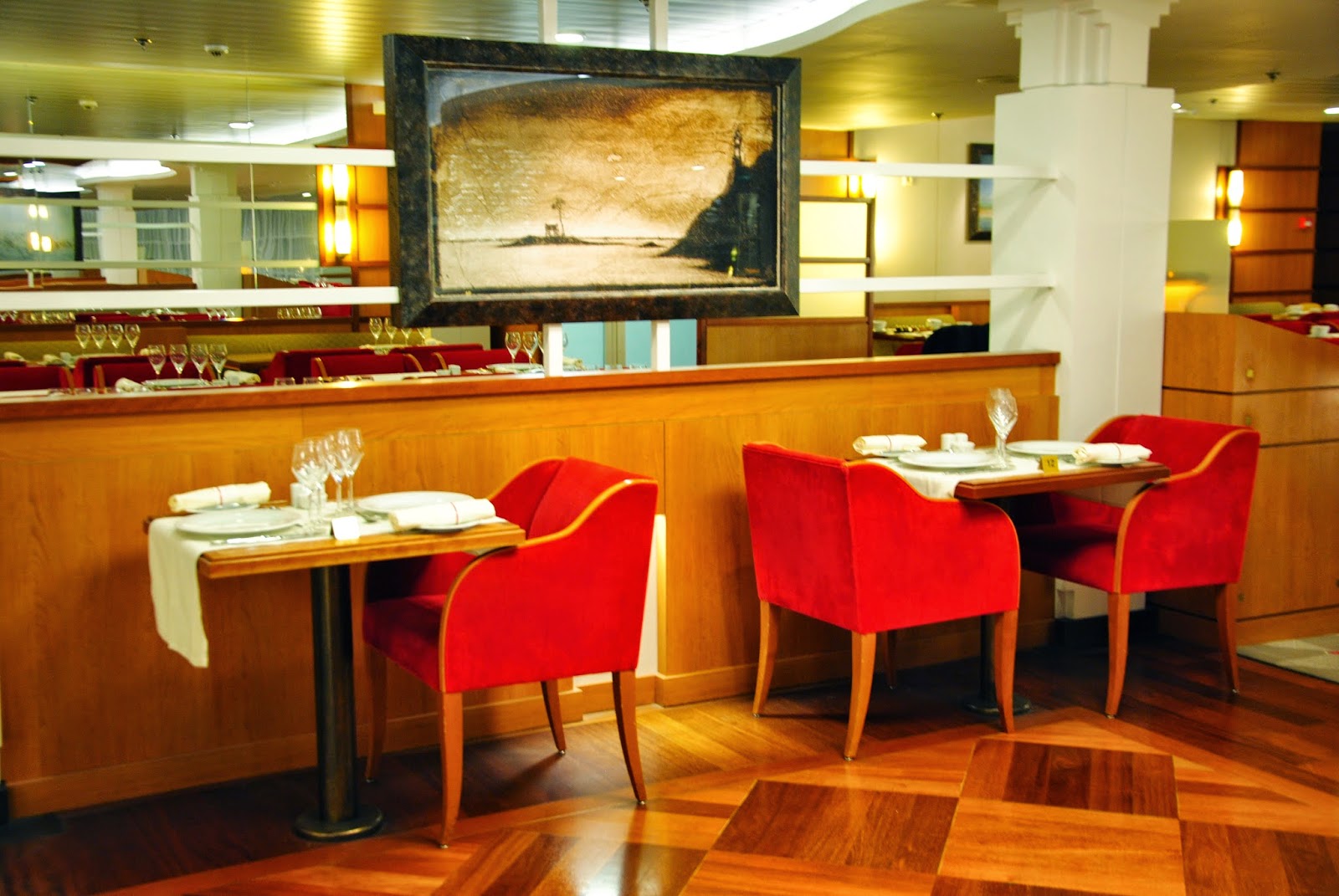 Located on deck number 9 on board the MONT ST MICHEL is the only bar on the ship, serving from mainly French wines and cocktails, the BLUE NOTE is a very pleasant room, located midships it's one of my favourite places aboard the ship, light snacks are also on the menu and there is also live music from the resident band. Photos 23.2.2015